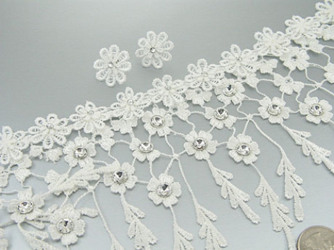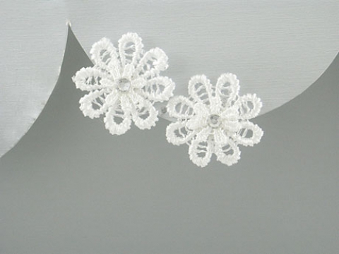 Steinum skreytt blóma blúnda með eyrnalokkum í stíl - alveg einstaklega fallegt og sérstakt hálsmen