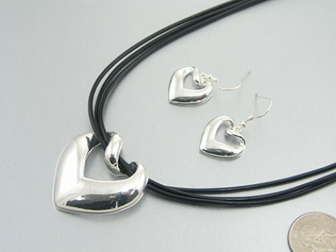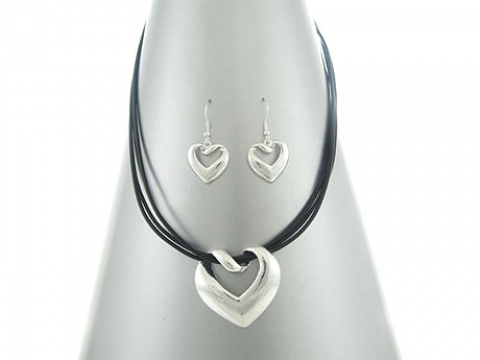 Falleg silfruð festi með eyrnalokkum í stíl - pússuð silfur áferð