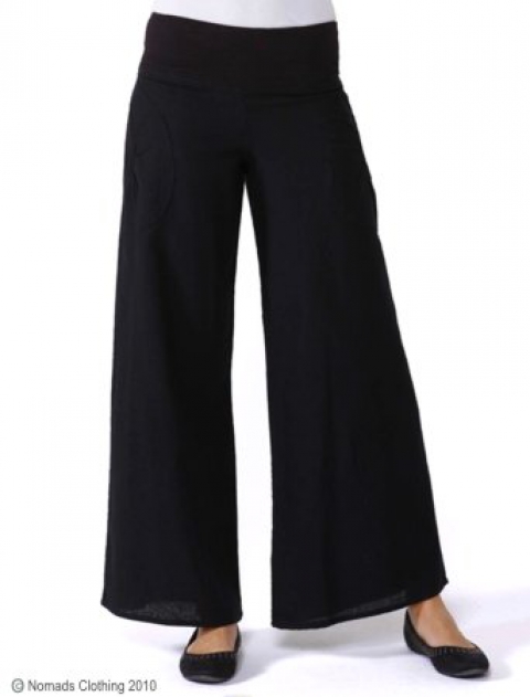 Þægilegar bómullar buxur með hringlaga vösum, þægilegur viscose strengur.