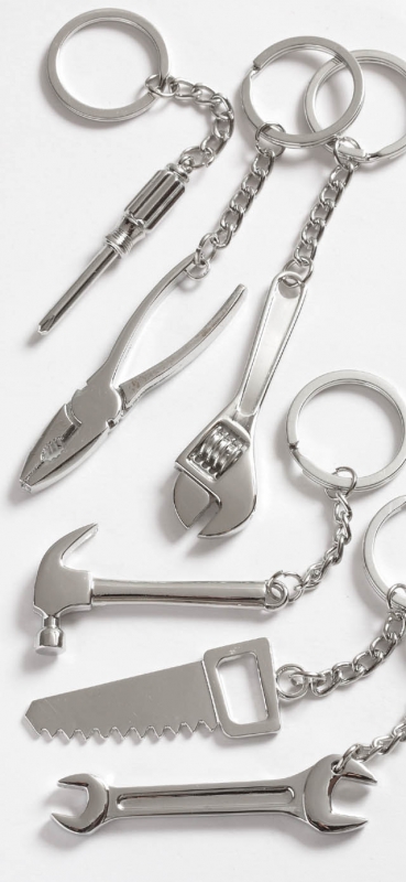 Ógeð flottar verkfærakippur - lykklakippur eða skraut. Verkfærin er almennt um 5 - 7 cm að lengd.