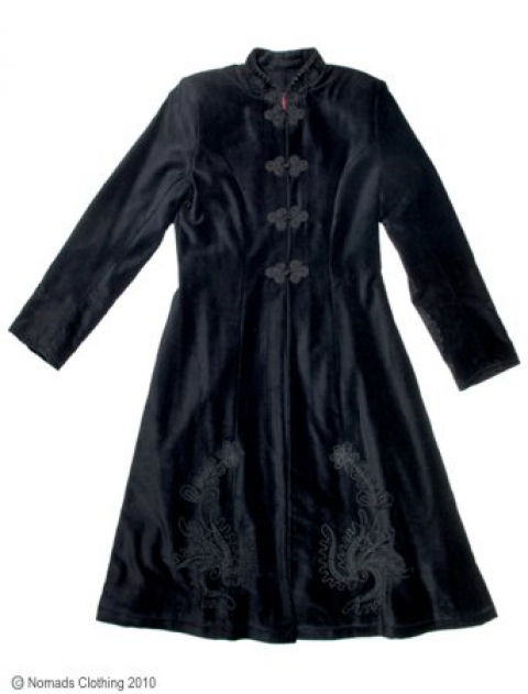 Um er að ræða rómantíska slétt flauels kápu með madarin kraga kínverskum hnöppum og útsaumi.