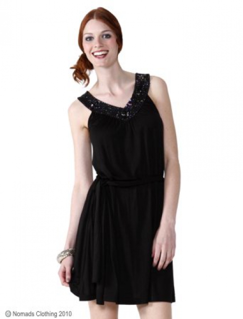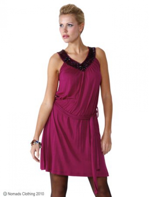 Mjúkur, yndislegur viscose kjóll með fallega skreyttu hálsmáli, hægt að nota sem kjól eða rykktan yfir leggings.