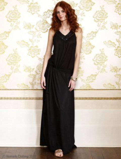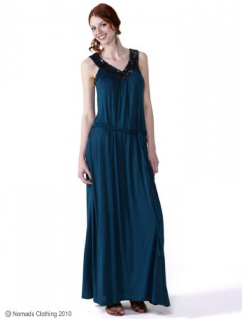Mjúkur, yndislegur viscose kjóll með  fallega skreyttu hálsmáli, hægt að nota sem kjól eða rykktan yfir leggings.