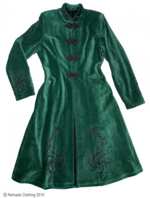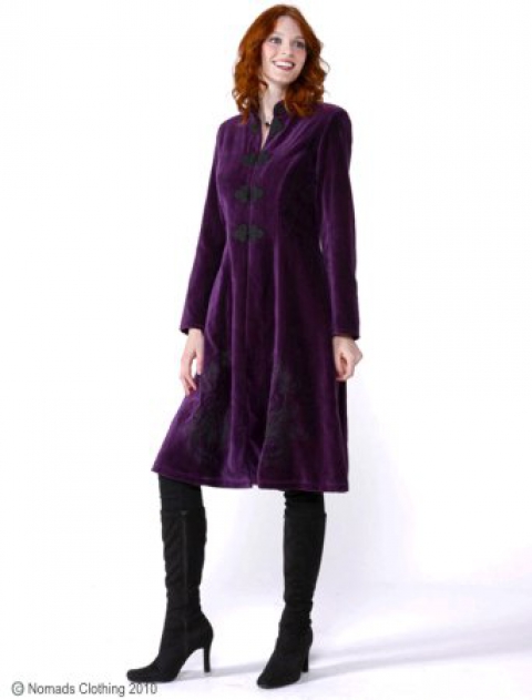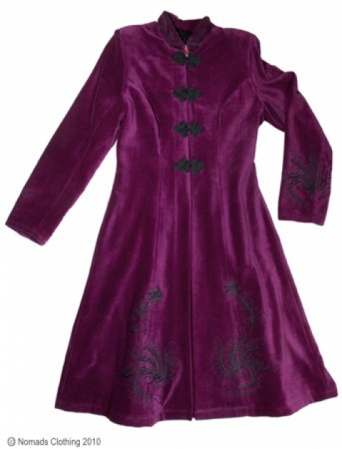 Um er að ræða rómantíska slétt flauels kápu með madarin kraga kínverskum hnöppum og útsaumi.